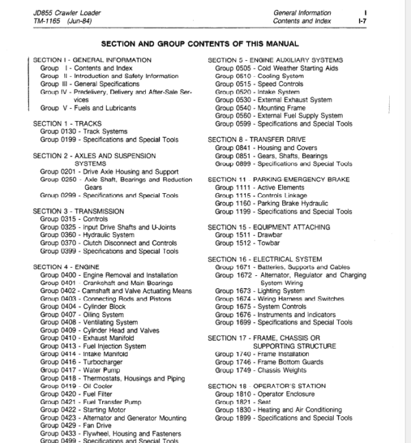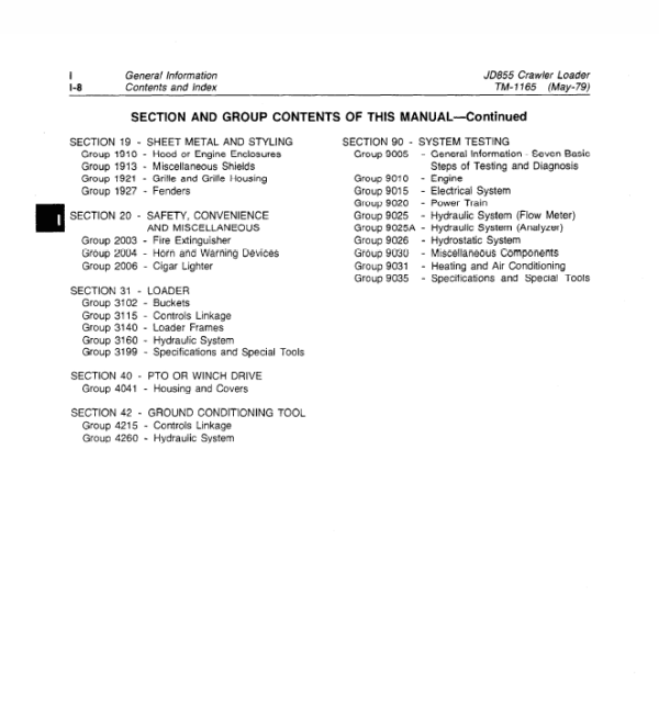 John Deere 855 Crawler Loader Service Manual TM1165 Sections: