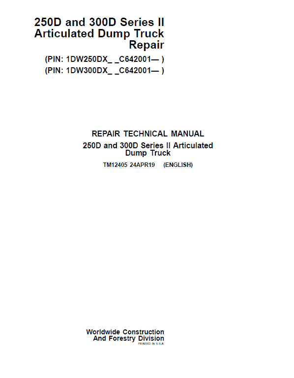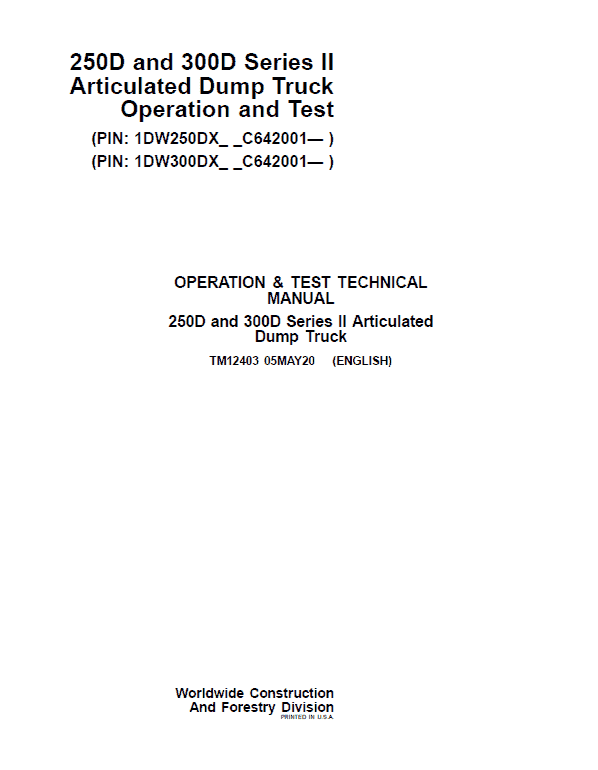 John Deere 250D, 300D Series 2 Dump Truck Technical Manual (S.N. after C642001 – )