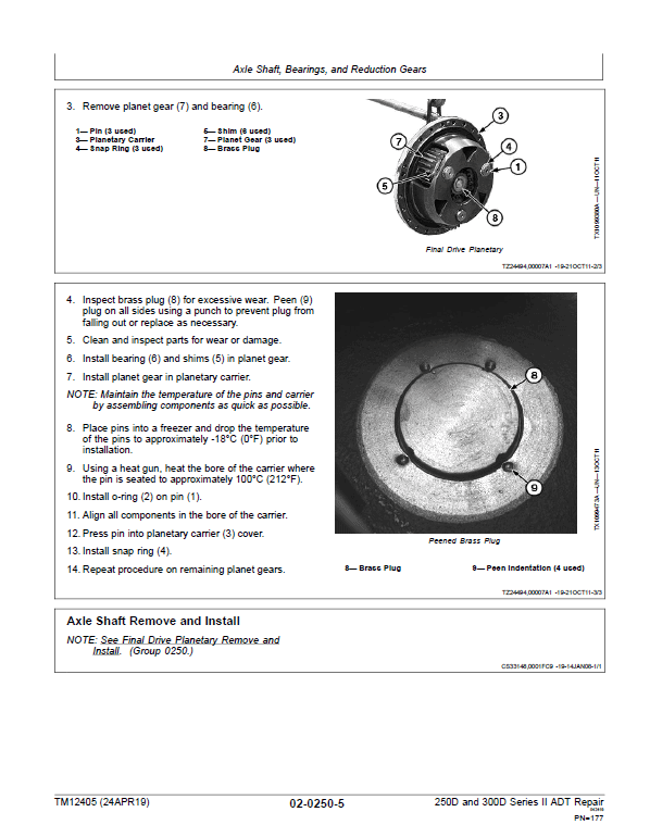 Group 0250—Axle Shaft, Bearings, and Reduction Gears