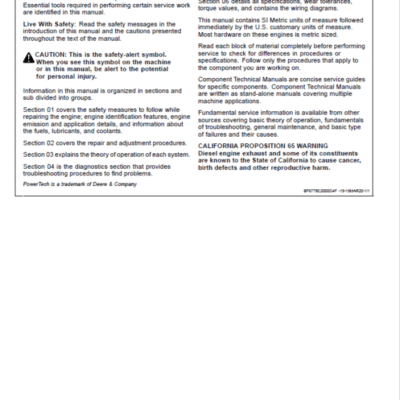 - John Deere Electronic Fuel Injection Systems Repair Service Manual (CTM68) – 294 Pages