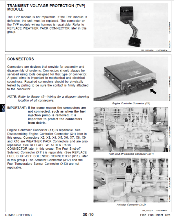 - John Deere Electronic Fuel Injection Systems Repair Service Manual (CTM68) – 294 Pages