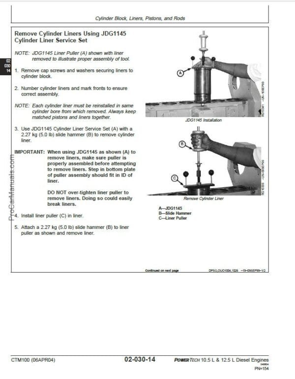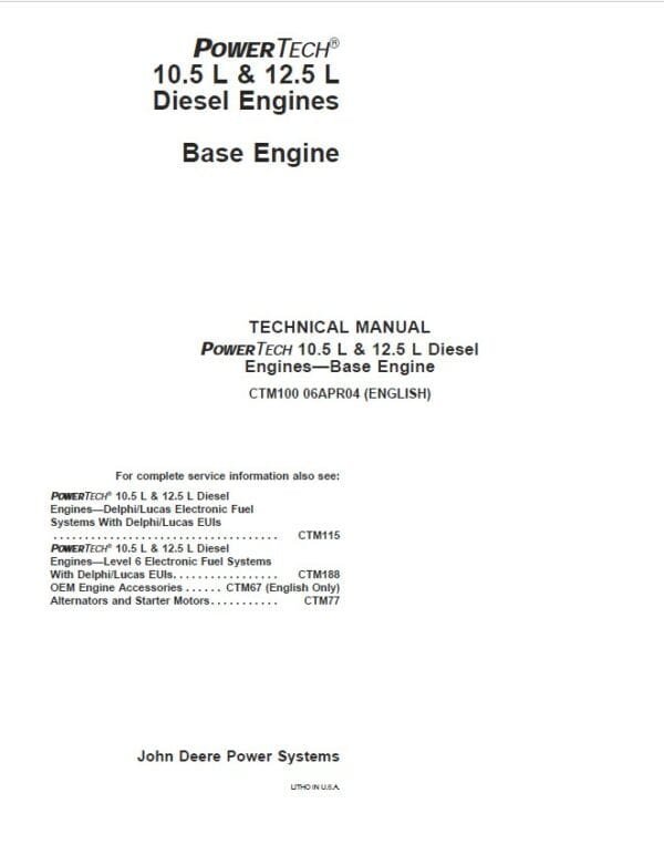 - John Deere PowerTech 10.5L, 12.5L Base Engine Service Repair Manual – 450 Pages