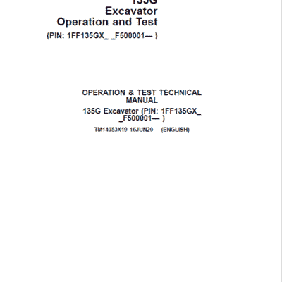 The John Deere 130GLC Excavator (S.N after D040001 – ) Technical manuals are divided in two parts: repair and operation and tests. Repair sections tell how to repair the components. Operation and tests sections help you identify the majority of routine failures quickly.