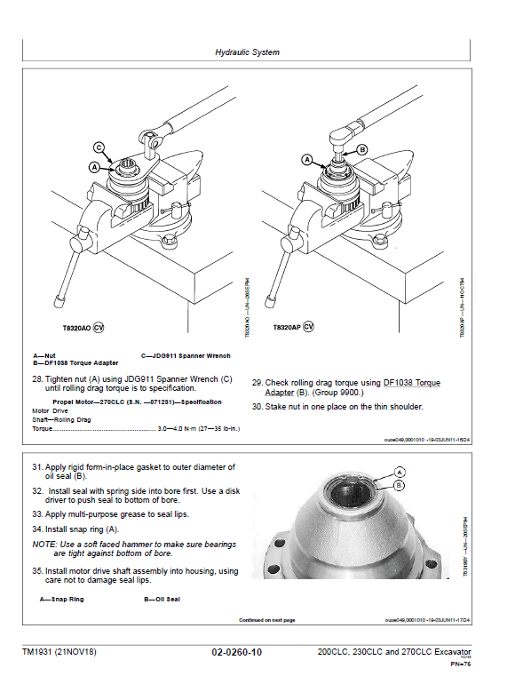 John Deere 200CLC, 230CLC, 270CLC Excavator Repair Service Manual