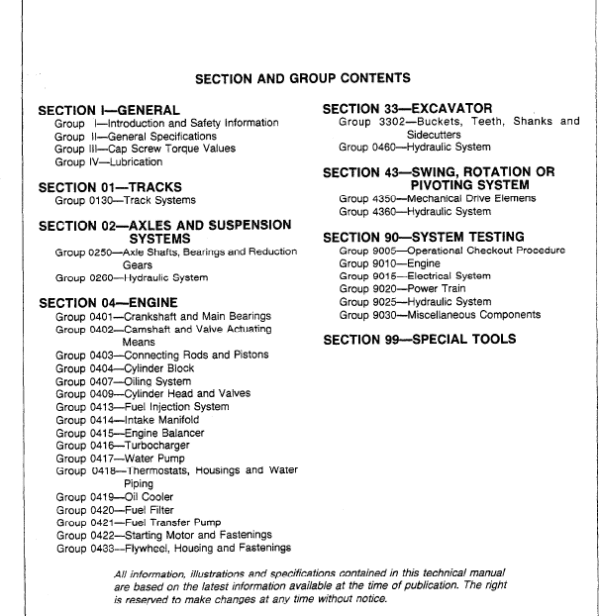 John Deere 490 Excavator Service Manual TM1302 Section: