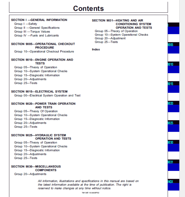 This Technical manual also known as Service Manual for John Deere 992D-LC Excavator includes repair and maintenance information, detailed description of service and troubleshoot procedures, installation instructions, special instructions, other additional information. This manual includes illustrations like pictures and diagrams which you can help you determine the installation location spare parts, etc.