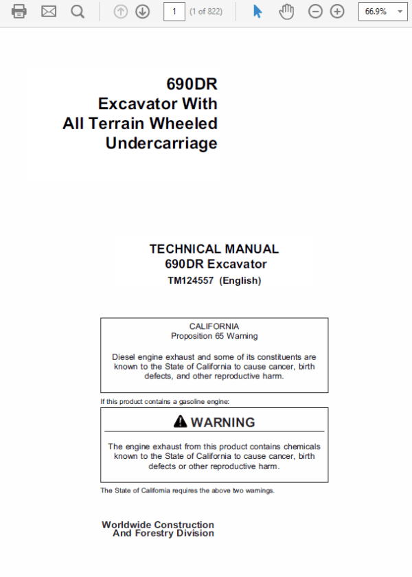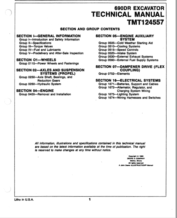 John Deere 690DR Excavator Service Manual TMT124557 Sections: