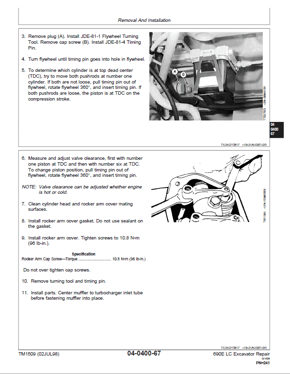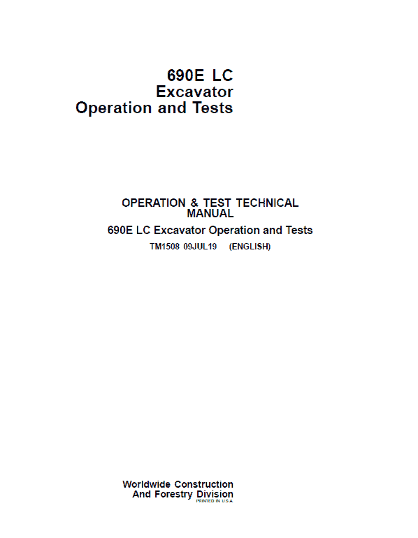 The John Deere 690E LC Excavator Technical manuals are divided in two parts: repair and operation and tests. Repair sections tell how to repair the components. Operation and tests sections help you identify the majority of routine failures quickly.