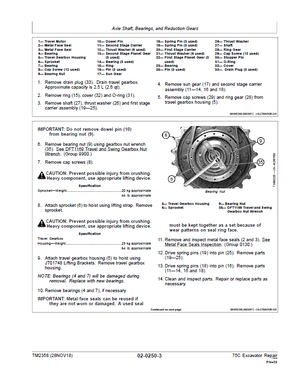 The John Deere 75C Excavator Technical manuals are divided in two parts: repair and operation and tests. Repair sections tell how to repair the components. Operation and tests sections help you identify the majority of routine failures quickly.