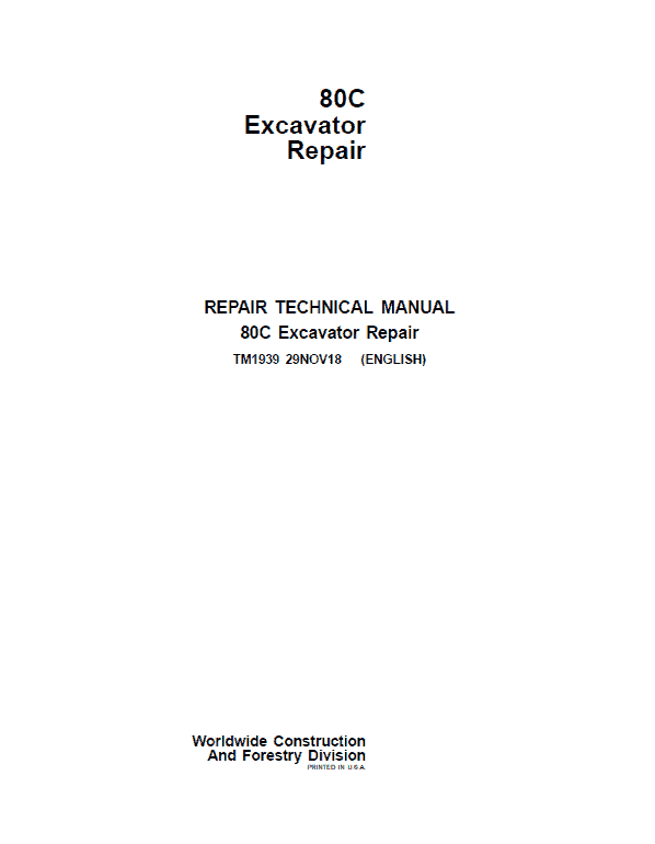 - John Deere 80C Excavator Repair Service Manual – 376 Pages (TM1939)