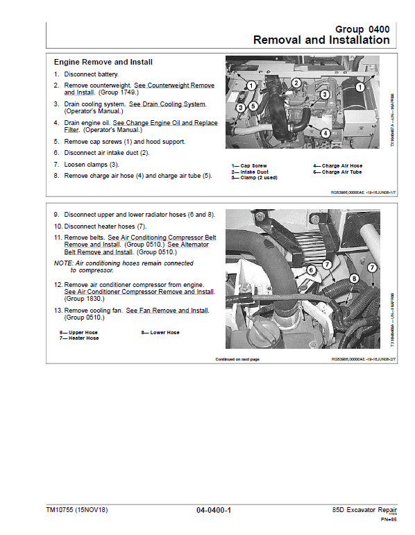 The John Deere 85D Excavator Technical manuals are divided in two parts: repair and operation and tests. Repair sections tell how to repair the components. Operation and tests sections help you identify the majority of routine failures quickly.