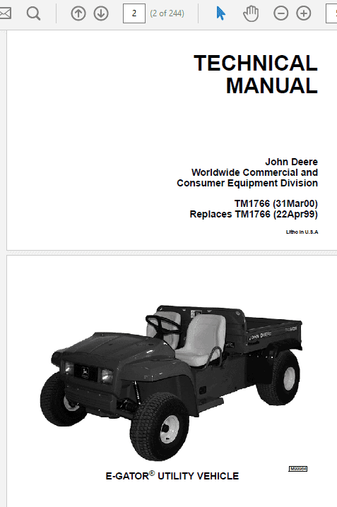John Deere E-Gator Utility Vehicle Service Manuals are concise service guides for a specific machine and are on-the-job guides containing only the vital information needed by a technician.