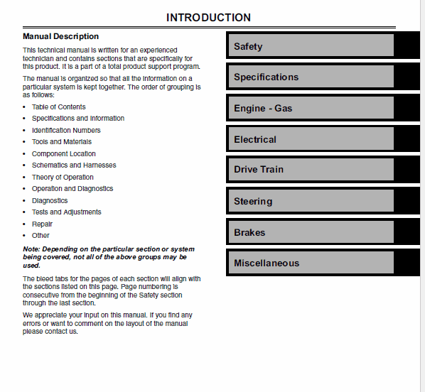 John Deere XUV 620i Gator Utility Vehicle Service Manual TM1736 Contents: