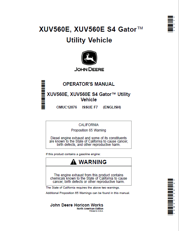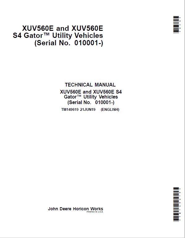 John Deere XUV560E, XUV560E S4 Gator Utility Vehicles Repair Manual