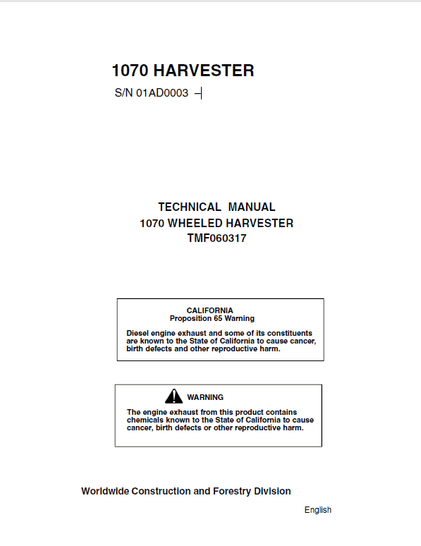 The John Deere 1070 Harvester Repair technical manuals tell you how to repair the components and help you identify the majority of routine failures quickly.