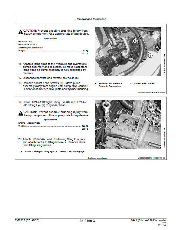 The John Deere 344J (Serial before 22913) Loader Technical manuals are divided in two parts: Repair and Operation and Tests.