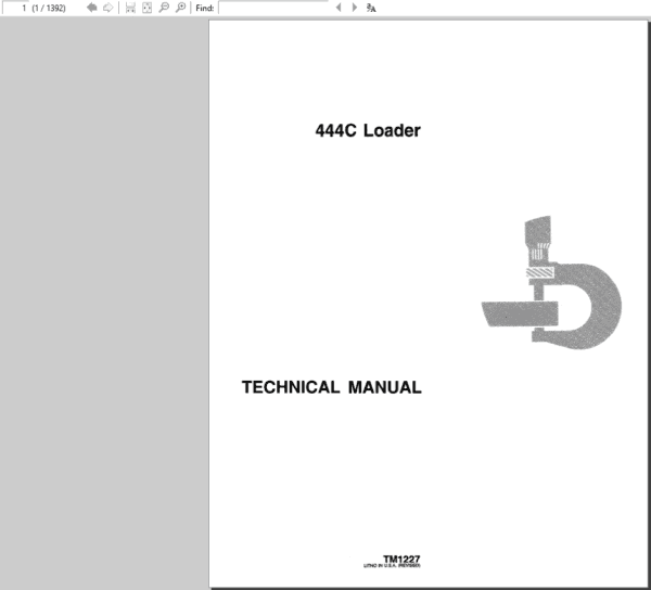 This Service Manual for John Deere 444C Loader is for a technician and contains sections that are only for this Loader model. Technical/Service manuals sections tell how to repair the components. Diagnostic sections help you identify the majority of routine failures quickly.