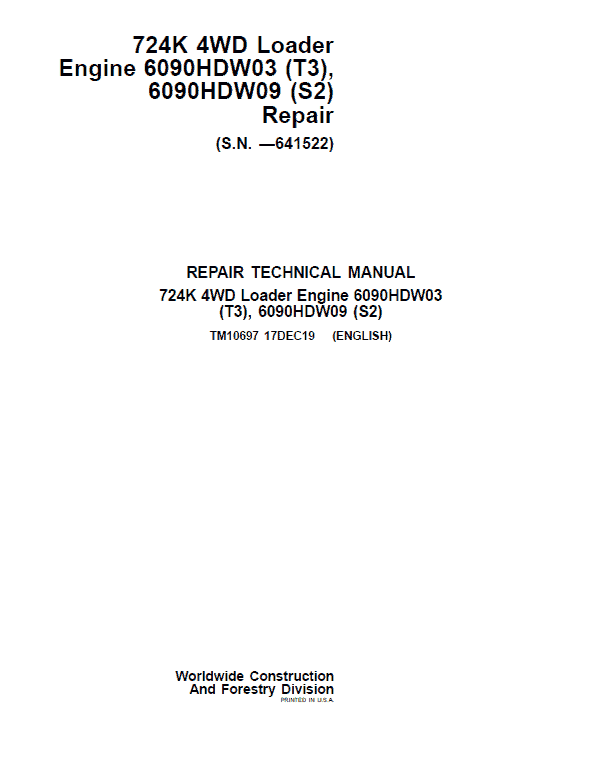 John Deere 724K 4WD Engine S2 & T3 Loader Service Manual