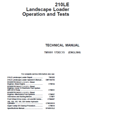 The John Deere 844K 4WD (Serial before – 642007) Loader Technical manuals are divided in two parts: Repair and Operation and Tests.