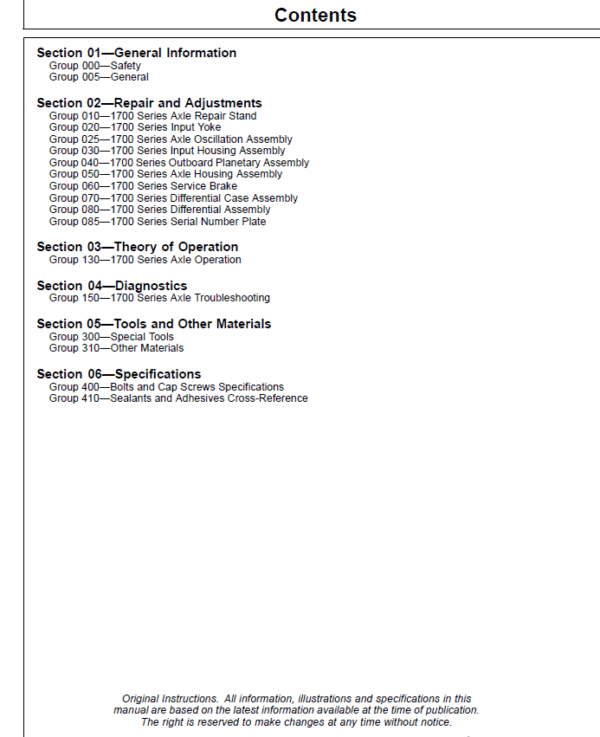 John Deere TeamMate V 1700 Series Outboard Planetary Axles Component Technical Manual