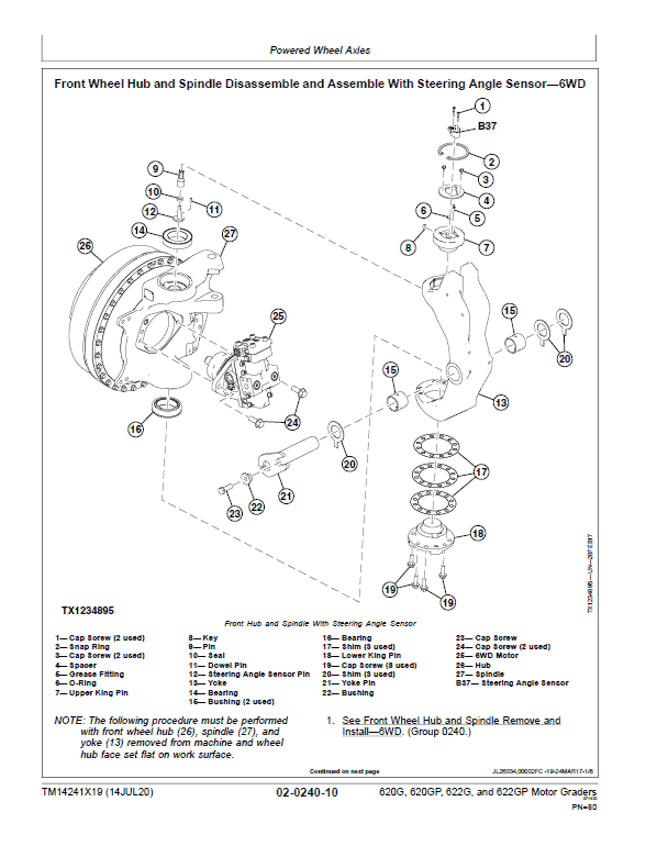 - John Deere 620G, 620GP, 622G, 622GP Motor Grader Repair Service Manual – 576 Pages (TM14241X19)