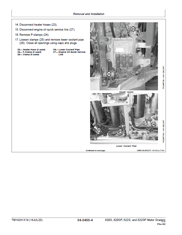 John Deere 620G, 620GP, 622G, 622GP Grader Repair Service Manual
