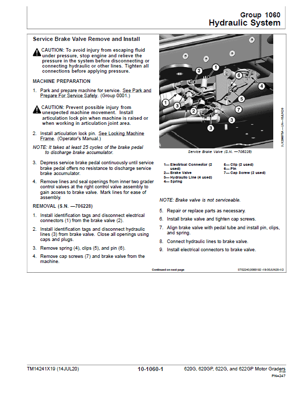 The John Deere John Deere 620G, 620GP, 622G, 622GP Grader Manual (Serial Number after F680878 & L700954 – ) Technical manuals are divided in two parts: Repair and Operation and Tests.