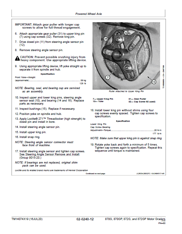 John Deere 870G, 870GP, 872G, 872GP Grader Repair Service Manual