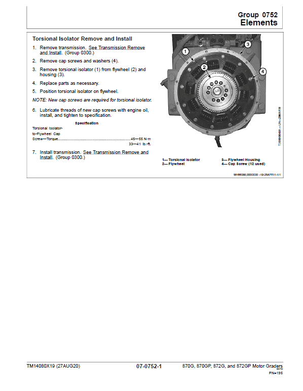 - John Deere 870G, 870GP, 872G, 872GP Motor Grader Repair Service Manual – 510 Pages (TM14080x19)