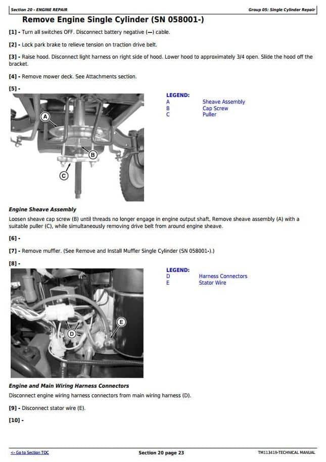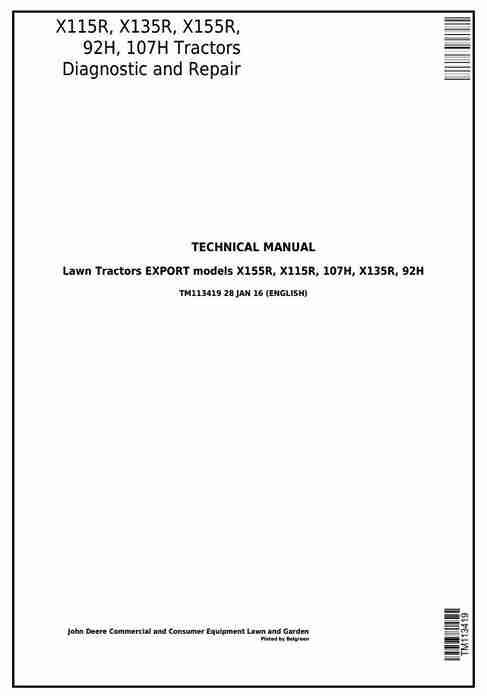 TM113419 – John Deere X115R, X135R, X155R, 92H, 107H Riding Lawn Tractors (EXPORT) Technical Service Manual