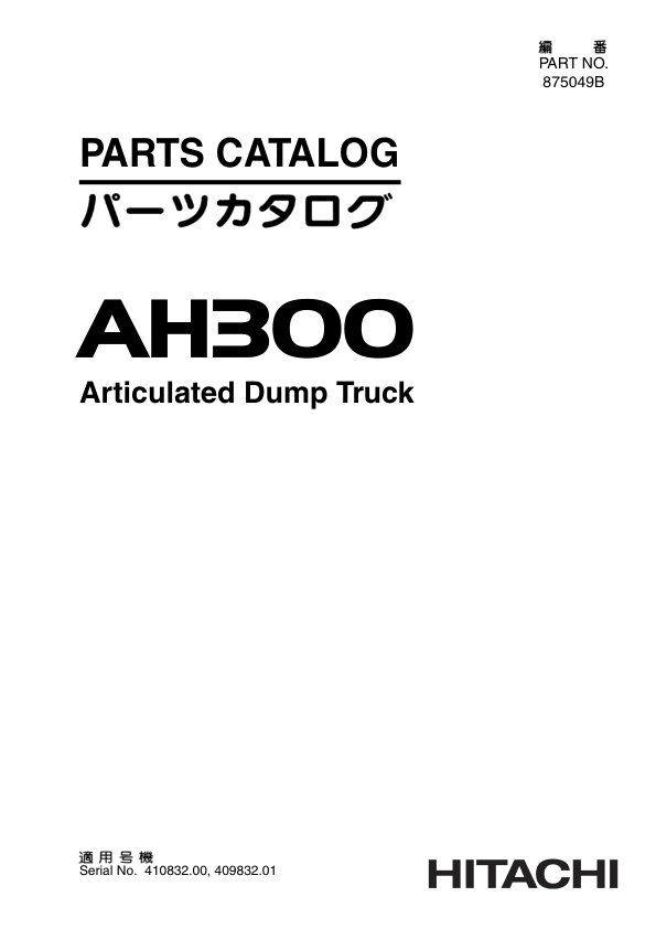 - Hitachi AH300 Articulated Dump Trucks (SN 410832.00 – 409832.01–) Parts Catalog – 272 Pages