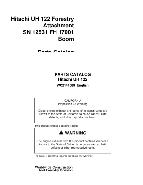 - Hitachi UH 122 Attachments (SN 12531- & FH 17001 Boom) Parts Catalog – 90 Pages