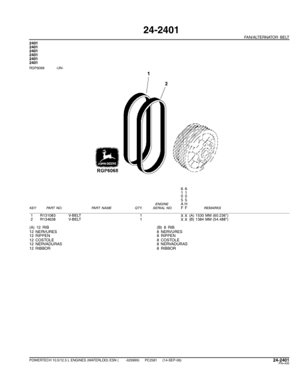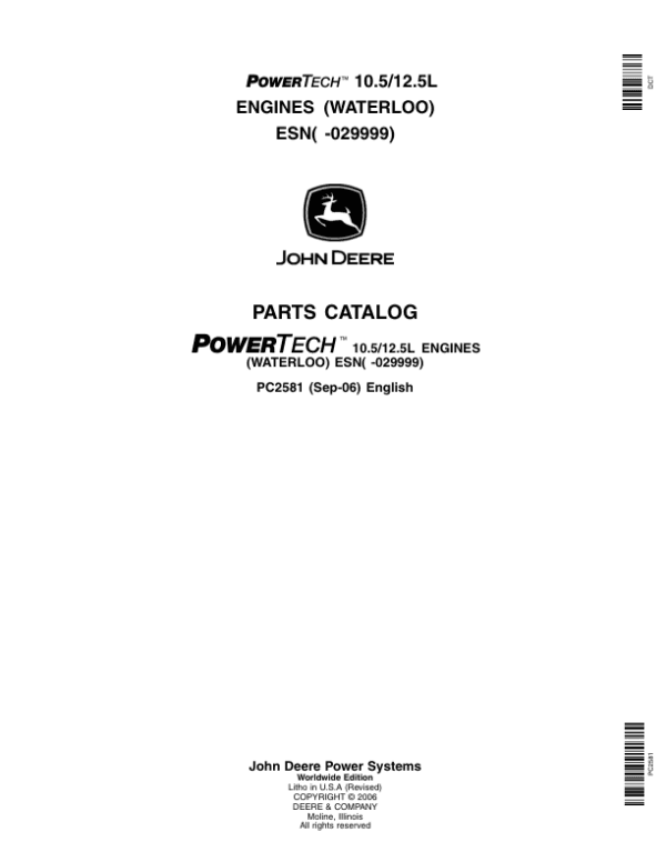 - John Deere 10.5L, 12.5L Engines (SN –029999) Parts Catalog – 1016 Pages