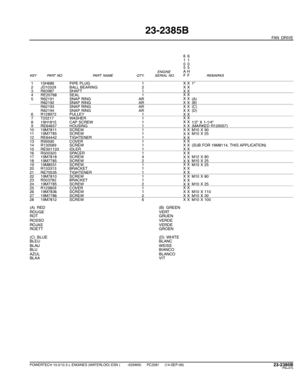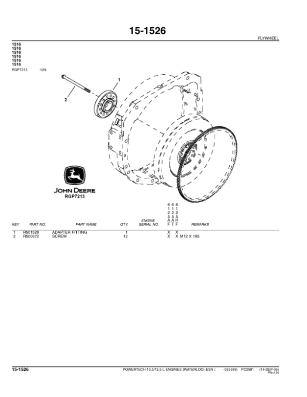 John Deere 10.5L, 12.5L Engines (SN –029999) Parts Catalog Manual
