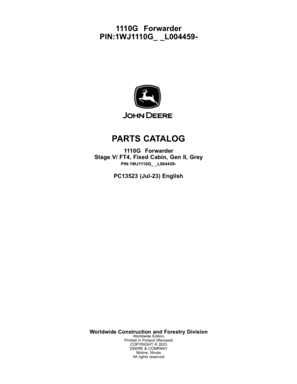 - John Deere 1110G FT4 FFC Forwarders (SN L004459-) Parts Catalog – 1676 Pages