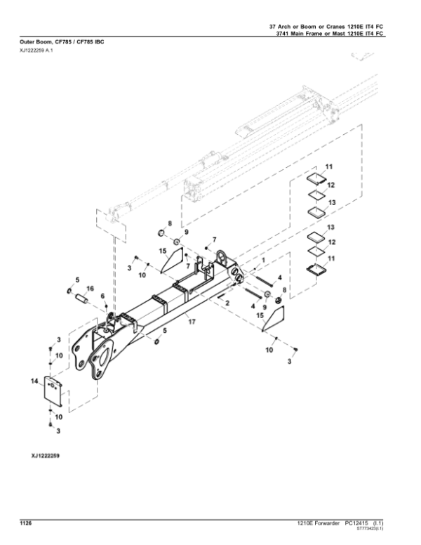 John Deere 1210E IT4 FFC Forwarders (SN 001501 – 001976) Parts Catalog Manual
