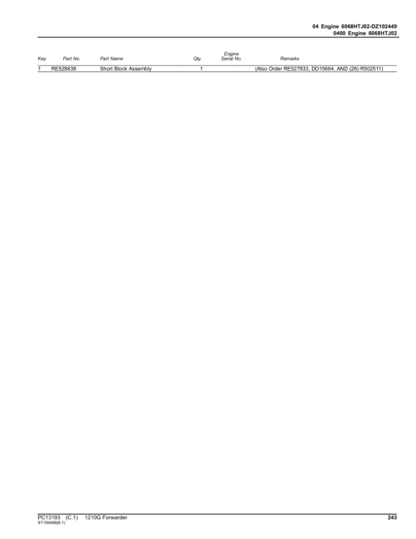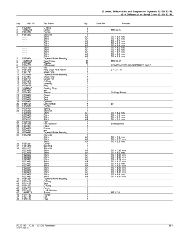 Serial Number Coverage – Covers all John Deere 1210G T2 RL Forwarders within SN range C002101-002508.
