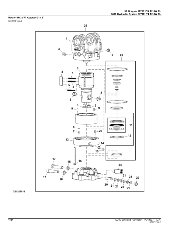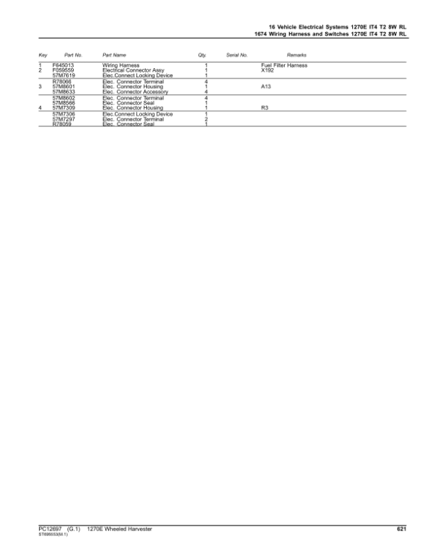 John Deere 1270E IT4 T2 8W Wheeled Harvesters (SN 003009 –003173) Parts Catalog Manual