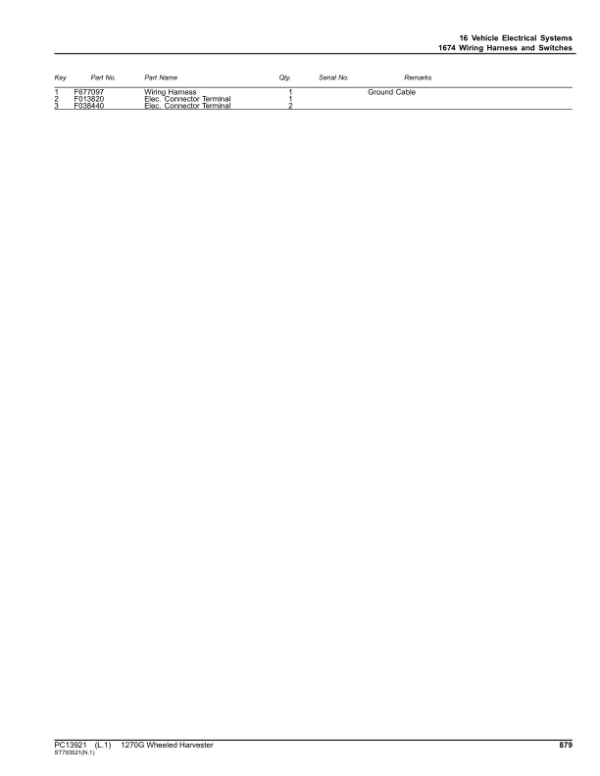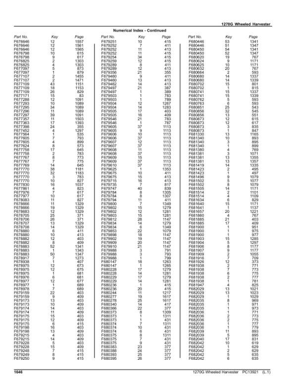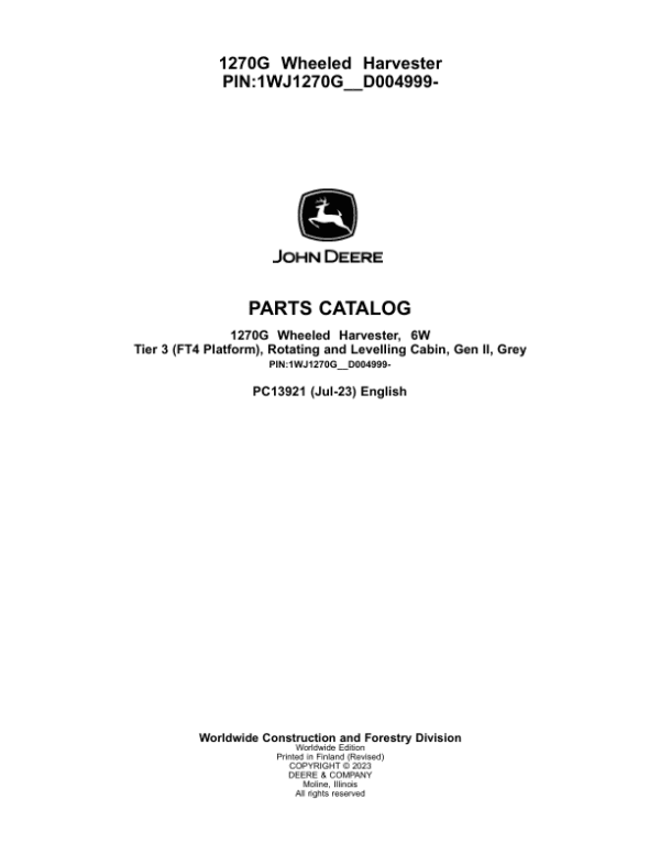 - John Deere 1270G 6W Wheeled Harvesters (SN 1WJ1270G_ _D004999-) Parts Catalog – 1664 Pages