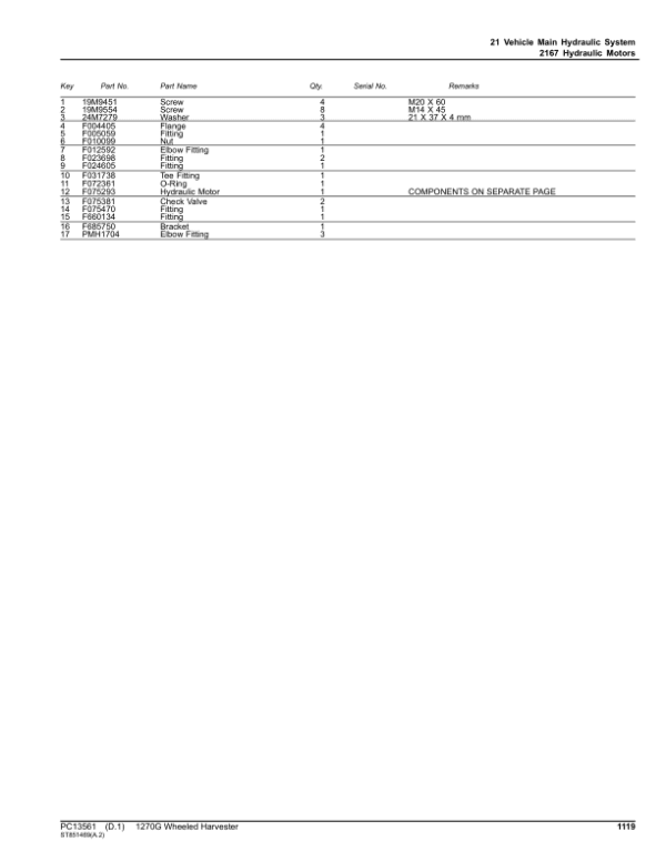 John Deere 1270G 8W Wheeled Harvesters Parts Catalog Manual – Key Content