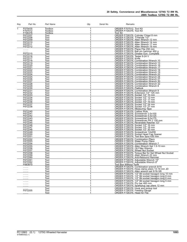 - John Deere 1270G T2 8W Wheeled Harvesters (SN 003505 – 004998) Parts Catalog – 1528 Pages
