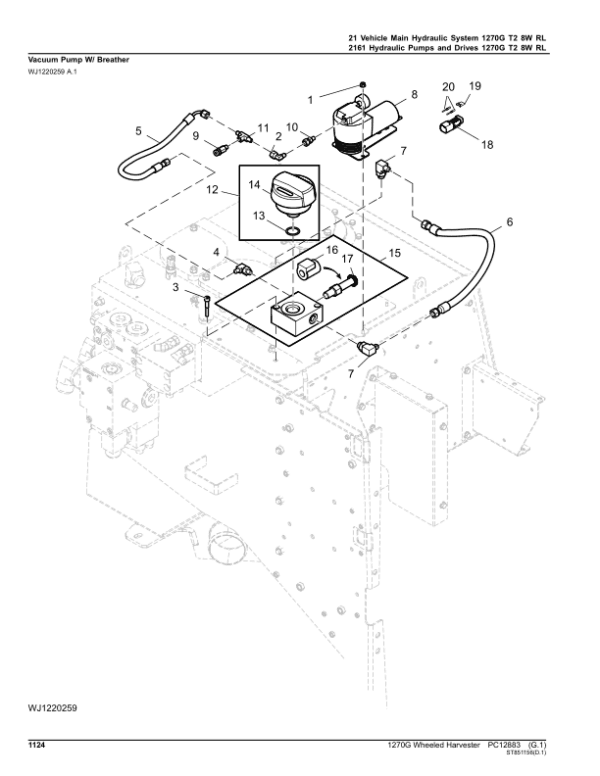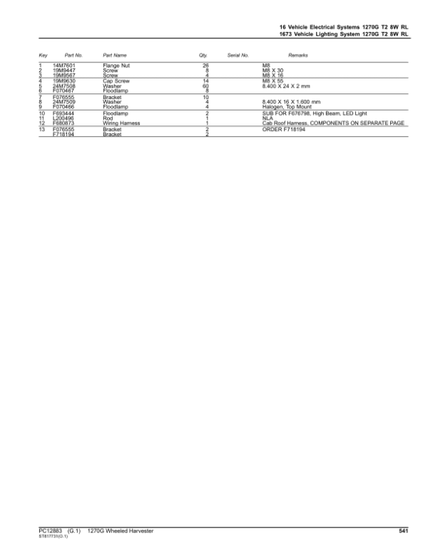John Deere 1270G T2 8W Wheeled Harvesters (SN 003505 – 004998) Parts Catalog Manual