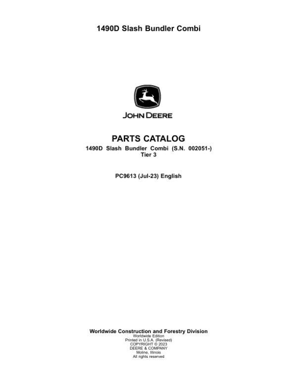 - John Deere 1490D T3 Forwarders (SN 002051-) Parts Catalog – 728 Pages
