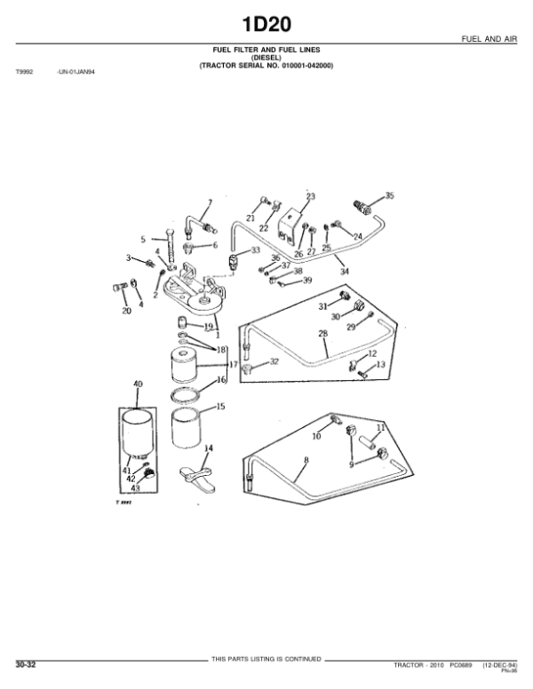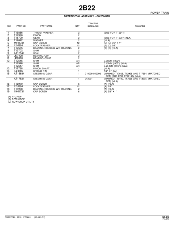 John Deere 2010 Tractors (Row Crop) Parts Catalog Manual