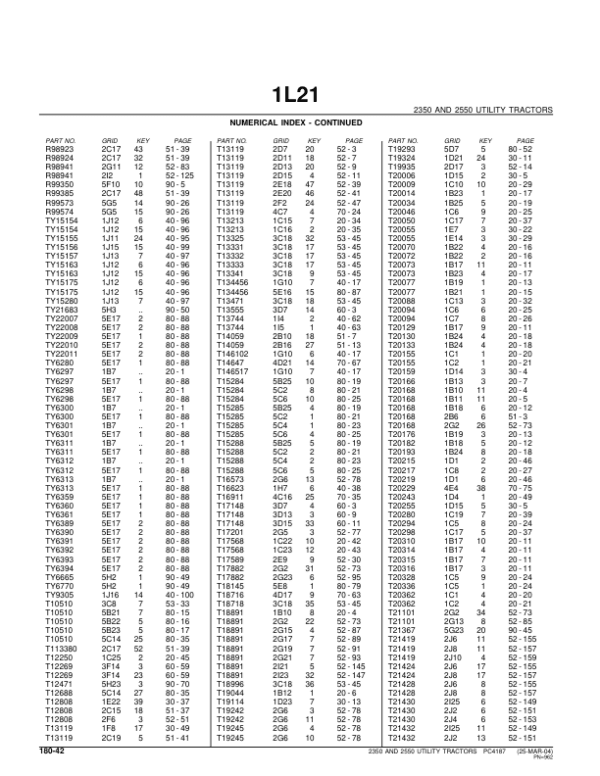 - John Deere 2350, 2550 Tractors Parts Catalog – 968 Pages