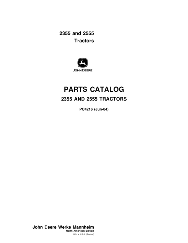 - John Deere 2355, 2555 Tractors Parts Catalog – 1279 Pages