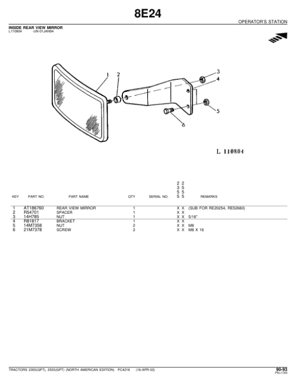 John Deere 2355, 2555 Tractors Parts Catalog Manual