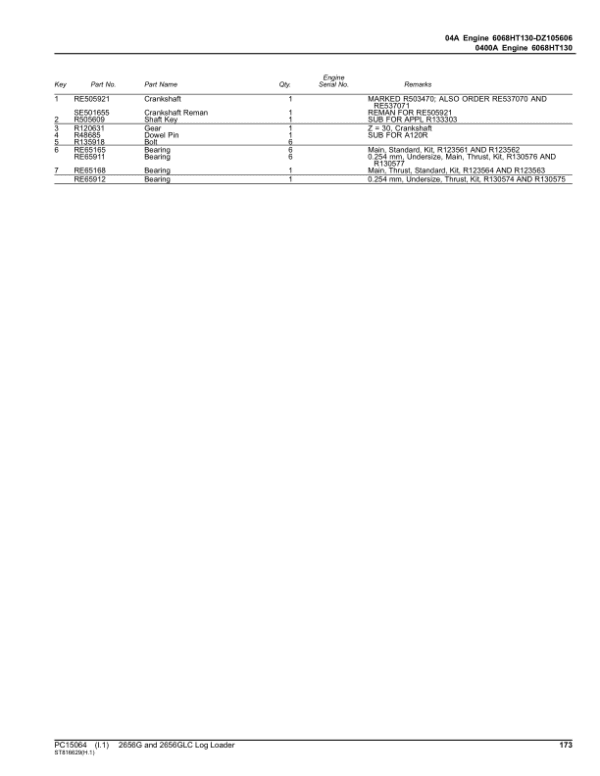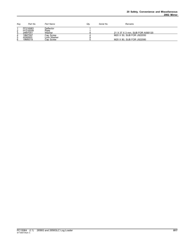 - John Deere 2656G, 2656GLC Log Loaders (SN C266001- & D266001-) Parts Catalog – 1156 Pages