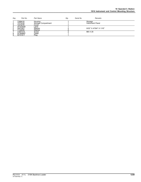 - John Deere 310K Backhoes (SN C219607-C277404 & D219607-D277404) Parts Catalog.