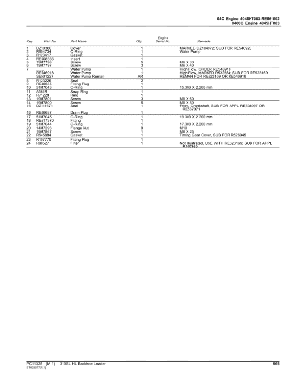 - John Deere 310SL HL Backhoe Loaders (SN F273920-390995) Parts Catalog